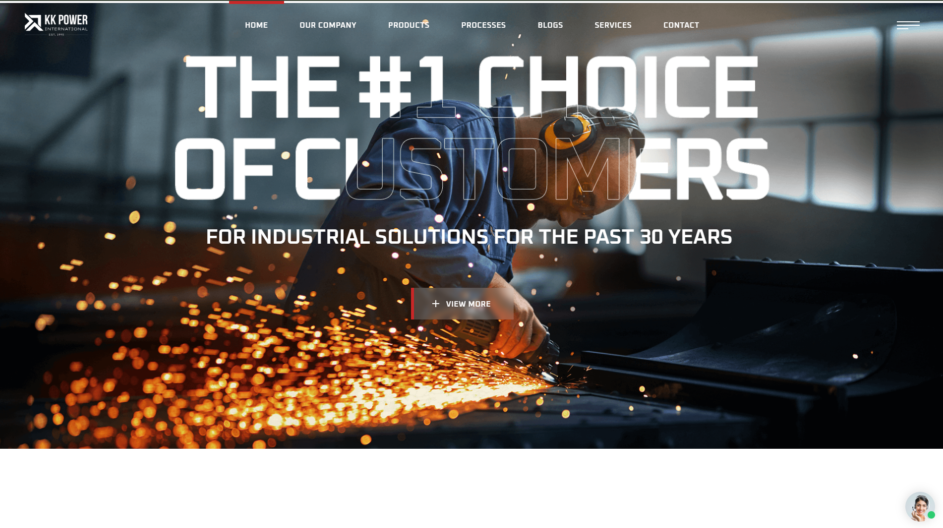 KK Power International Industrial solutions website for a company with 30+ years of experience in power and industrial equipment.