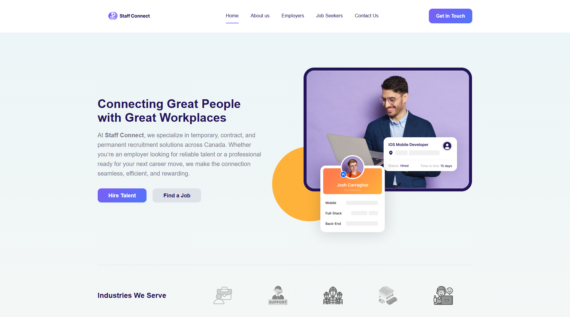 Staff Connect Professional recruitment and staffing agency specializing in temporary, contract, and permanent recruitment solutions across Canada with personalized service and local expertise.